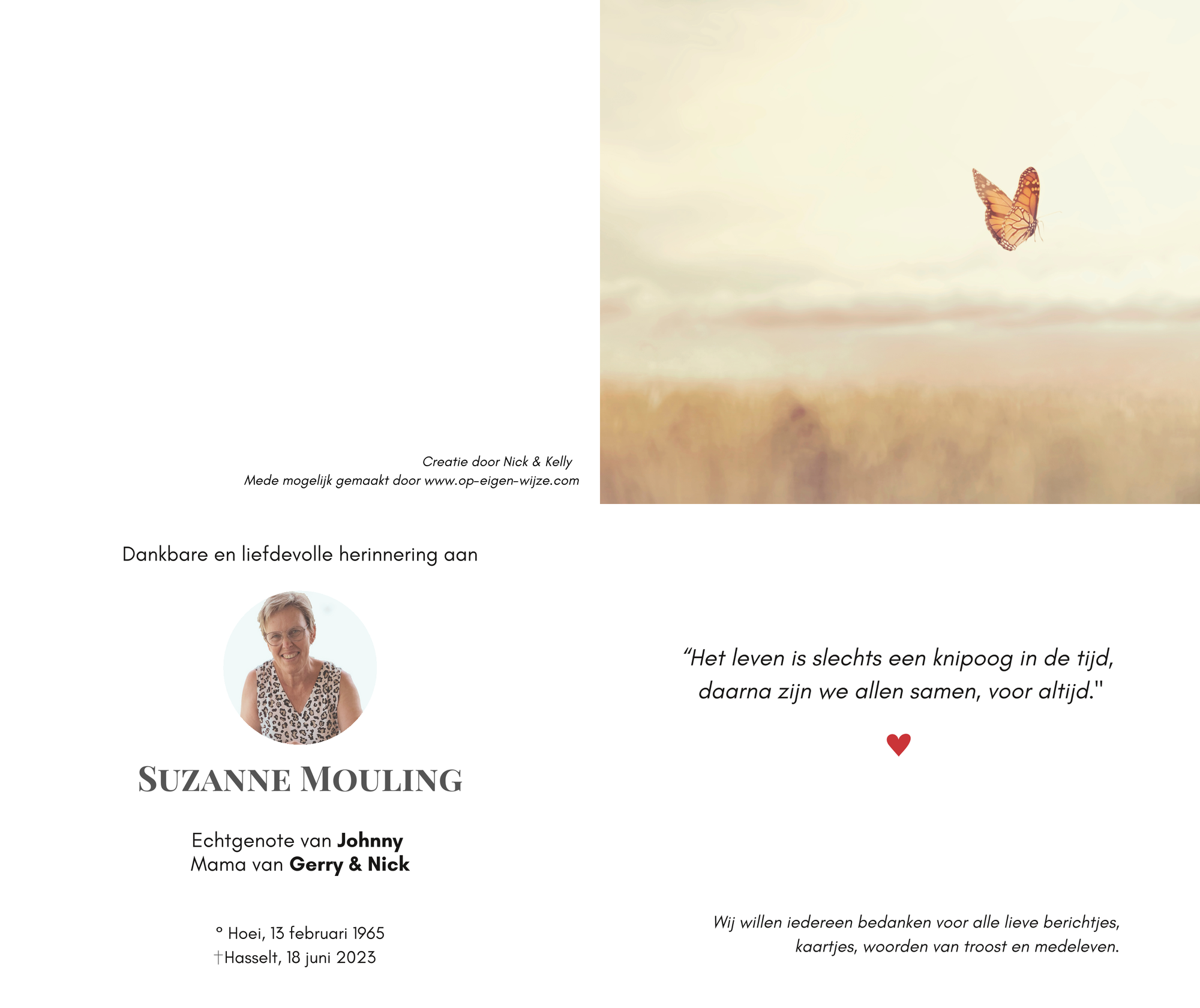 Voor ons was dit een prachtige manier om afscheid te nemen van mama. De steun was enorm en wij willen jullie allemaal bedanken hiervoor.